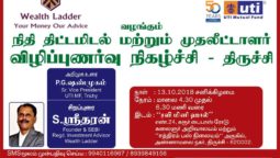 Wealth Ladder along with UTI mutual fund brings an investor awareness program on mutual funds, financial planning at Trichy. Investors can ask any questions about the equity market, mutual funds, debt funds etc., All Are Welcome.