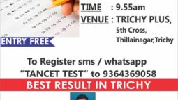 Attention TANCET exam aspirants, great opportunity to take “TANCET MOCK SCHOLARSHIP TEST -2018” at Trichy plus. Crack your MBA/ MCA higher study dream.
